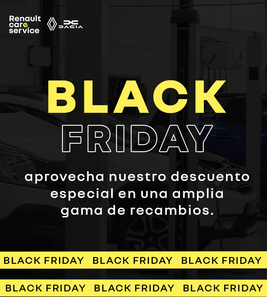 Las ofertas de descuento en recambios solo estarán disponibles durante el Black Friday en nuestro Taller Oficial Renault Care Service. Esta es tu oportunidad para mantener tu vehículo en perfectas condiciones aprovechando precios especiales.