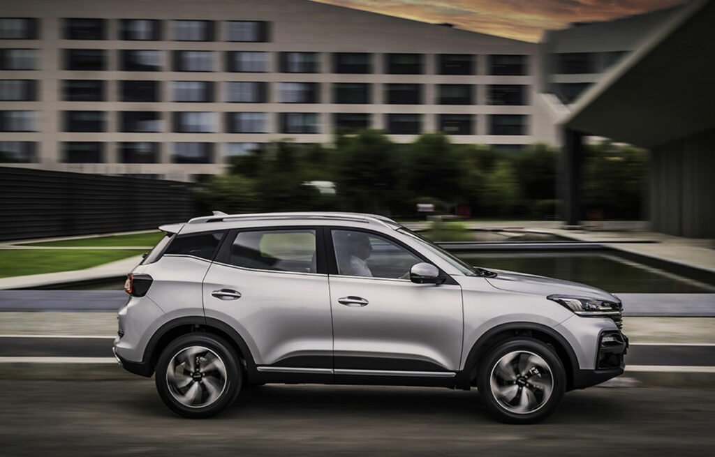 Un SUV que no tiene pinta de vehículo económico, con líneas inspiradas en el flujo del agua y detalles deportivos en negro y metálico.